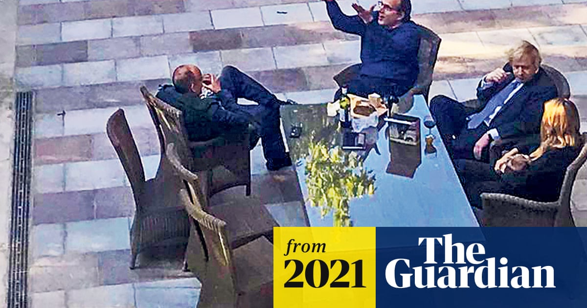 The photograph was shared with the Guardian following No 10’s denial last week that there was a social event on Friday 15 May 2020 including wine, spirits and pizza inside and outside the building. Johnson’s spokesman said Downing Street staff were working in the garden in the afternoon and evening.