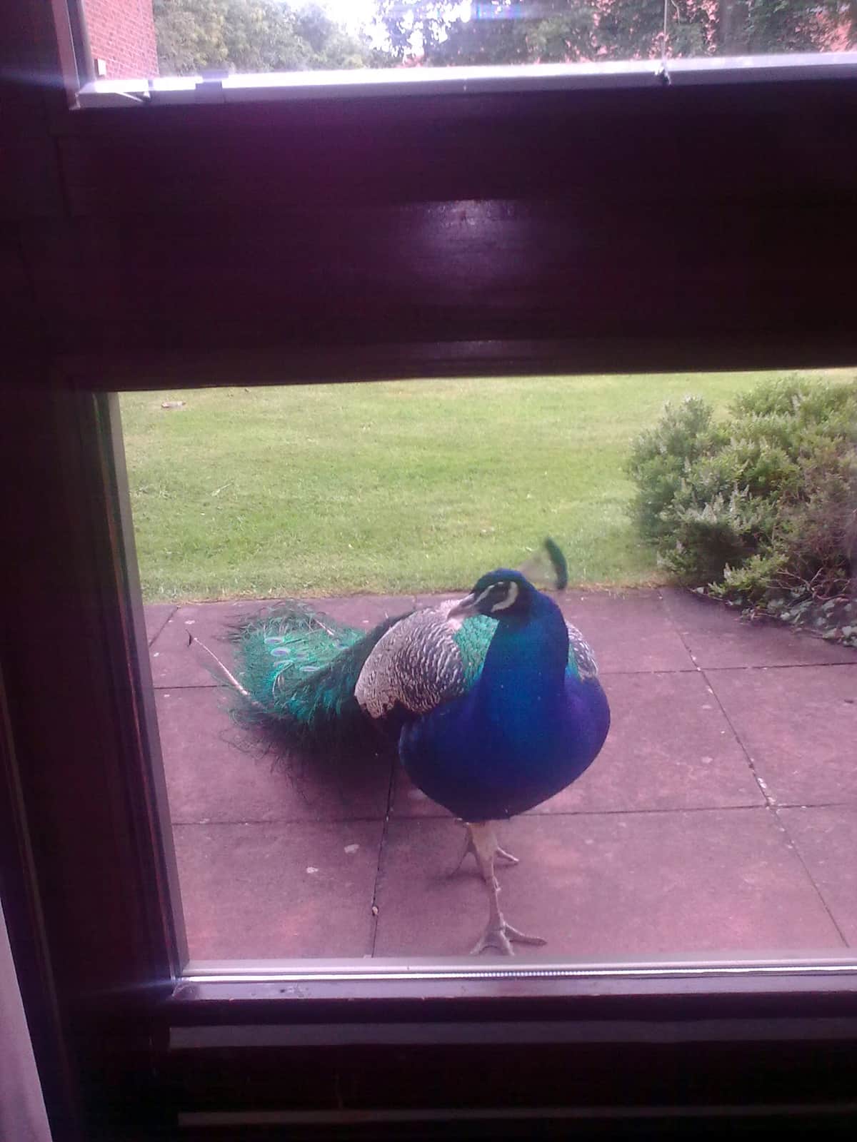 I remember when I had my hip replaced, they had a peacock wandering around the gardens and would tap on the glass whenever it saw me eating something. It would squawk all day, but disappeared at night time.