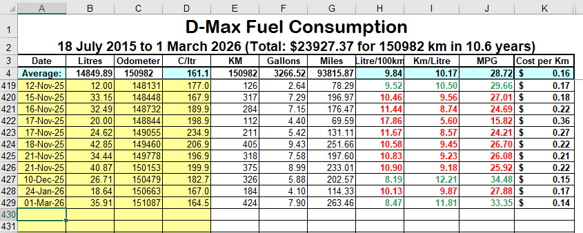 Being a bit OCD I started keeping a record when I suspected my old Starwagon was using more petrol than it should, turned out to be a blocked air filter.