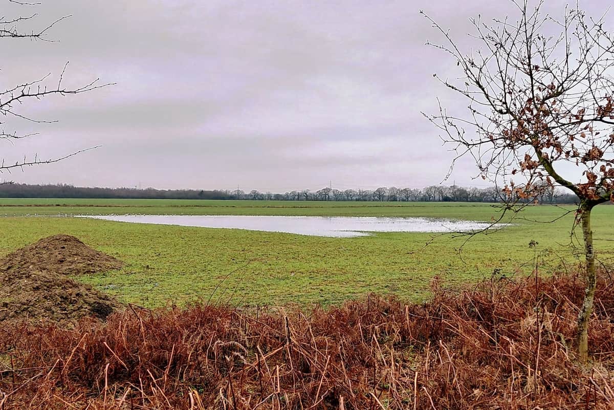 I turned down a side street and away from the roar of the traffic, it led me to the start of the lane and a large flooded field…