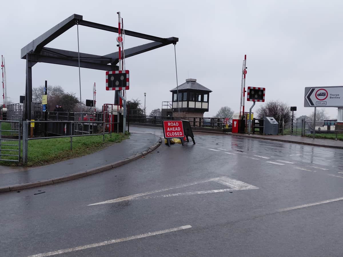 The road over the bridge was closed due to flooding, but some drivers were ignoring the road closed sign and going to try their luck anyway. I’ll probably be reading about them in next weeks local paper… :009: