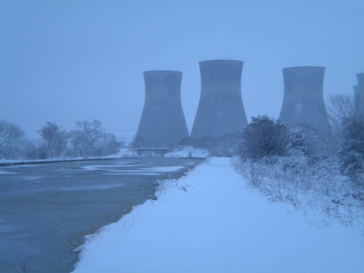 The cooling towers were demolished in 2012 Bruce. They wrapped a steel cable around the base and pulled them down with a digger.