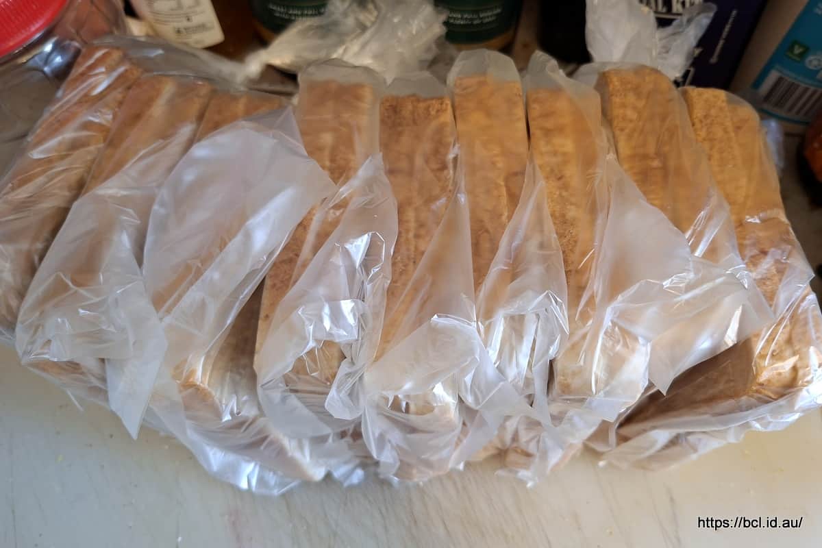 …ready for freezing. When my kids were at school I just used to put the whole loaf in the freezer because it only lasted a few days but I have found that if I do that living alone, constantly removing it to get a couple of slices meant the last half of the loaf had welded itself together by slightly unfreezing and re-freezing.