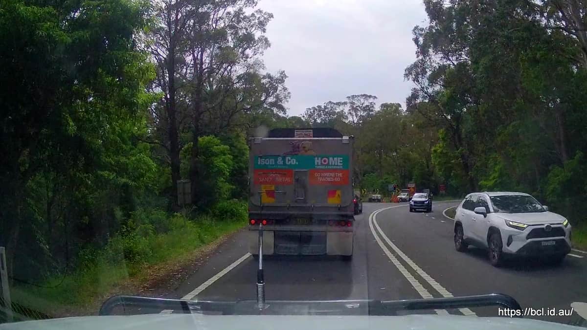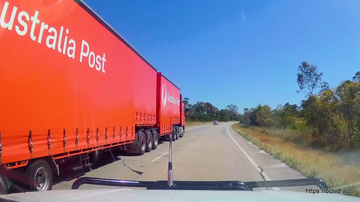 Here we are on the expressway going past an Australia Post truck (the mail must get through)