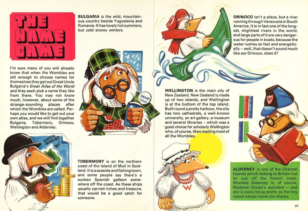 When a Womble reached an age where he had to work, Great Uncle Bulgaria got out his very old & well used atlas. The young Womble would then chose a name from the words in the atlas, most studied it hard to get the right name that suited, but some just stuck a pin in it & where it landed was their name. This is why Wombles names are unusual.