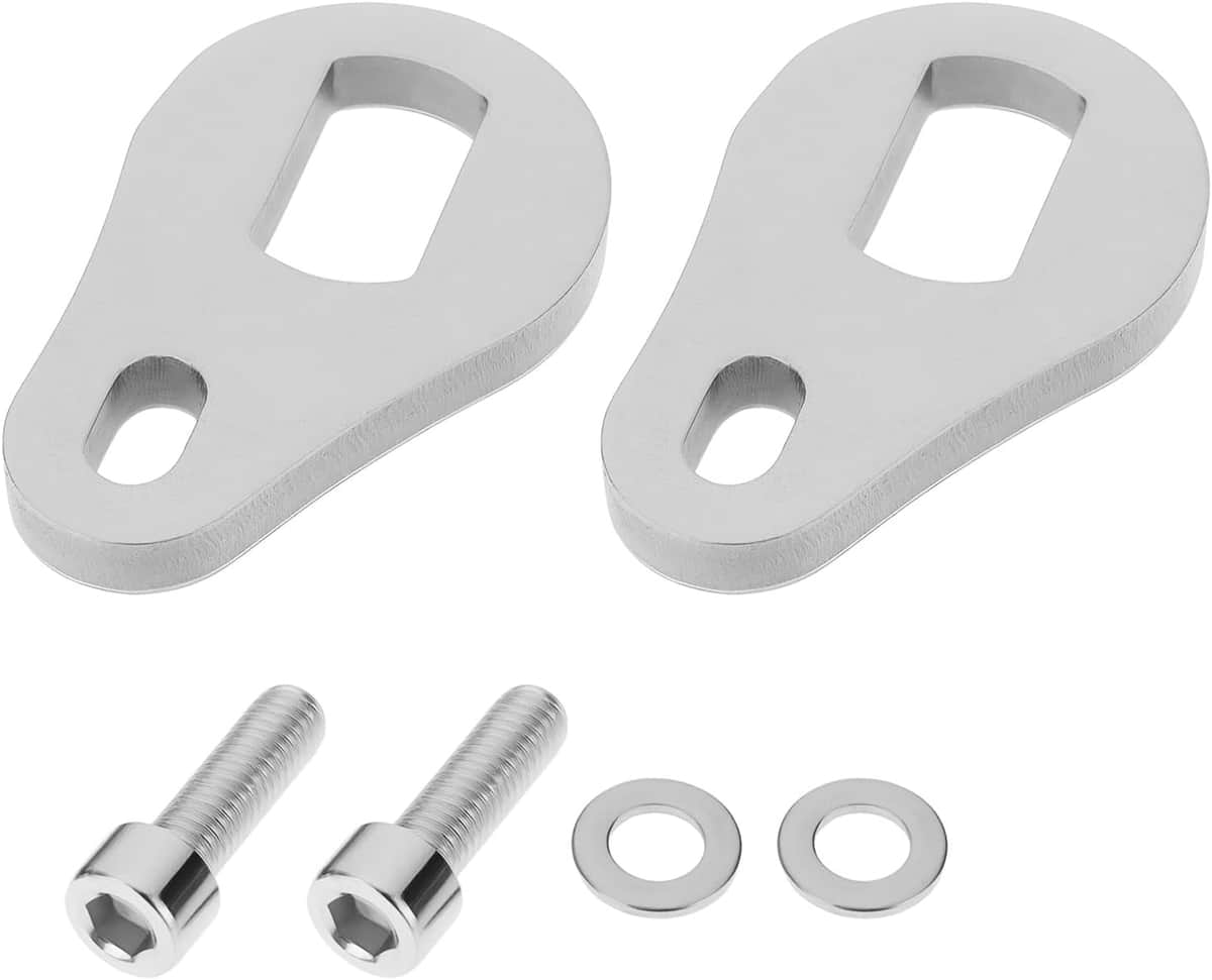 Here are the torque arms, they trap the flats on the axle and bolt into the pre threaded holes in the frame usually used for mudguards or panniers
