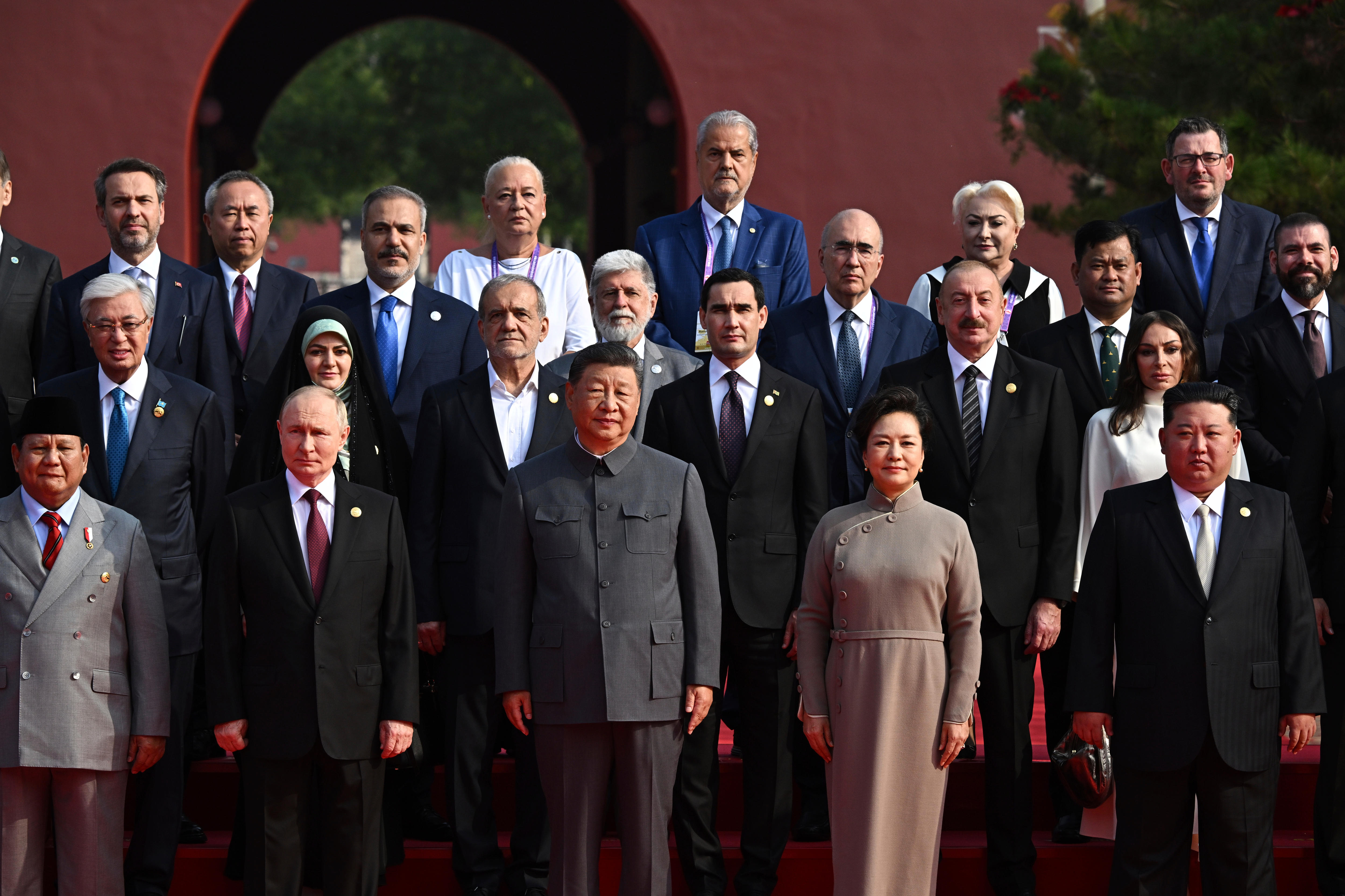 I think you might have missed a few, the front row alone consisted of Russian President Vladimir Putin, Chinese President Xi Jinping, First Lady Peng Liyuan and North Korea’s leader Kim Jong-un