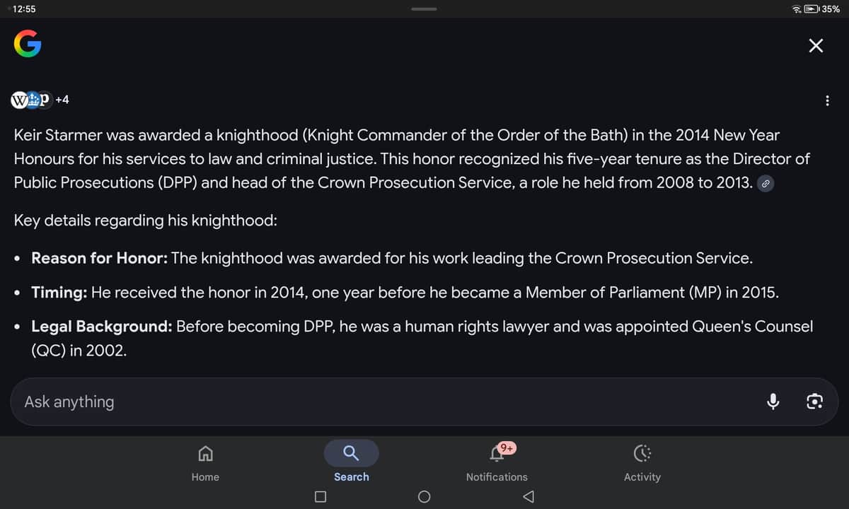I gather when he was a Prosecutor he was really good at his job, he earned his Sir title from one of his big cases. Pity he decided to leave a job he was respected in. Look at him now.